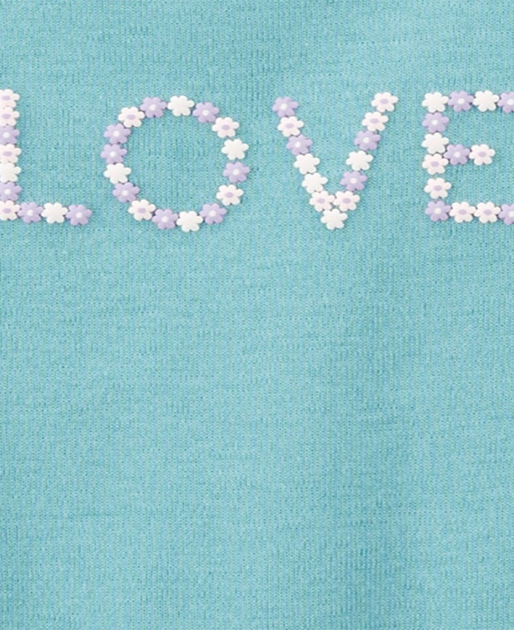 1 Body azul claro com bordado de lettering: love