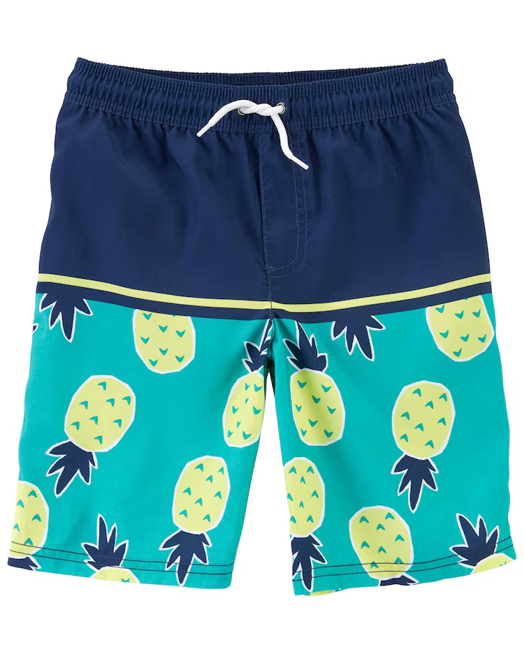 Traga mais conforto e estilo ao seu baby com a Bermuda água infantil de abacaxi e elástico multicor | Carter's. Feita de tactel, a bermuda é ideal para curtir a praia, conta com cós de elástico, cordão de amarração e seu destaque se encontra na estampa de abacaxis. Aposte!